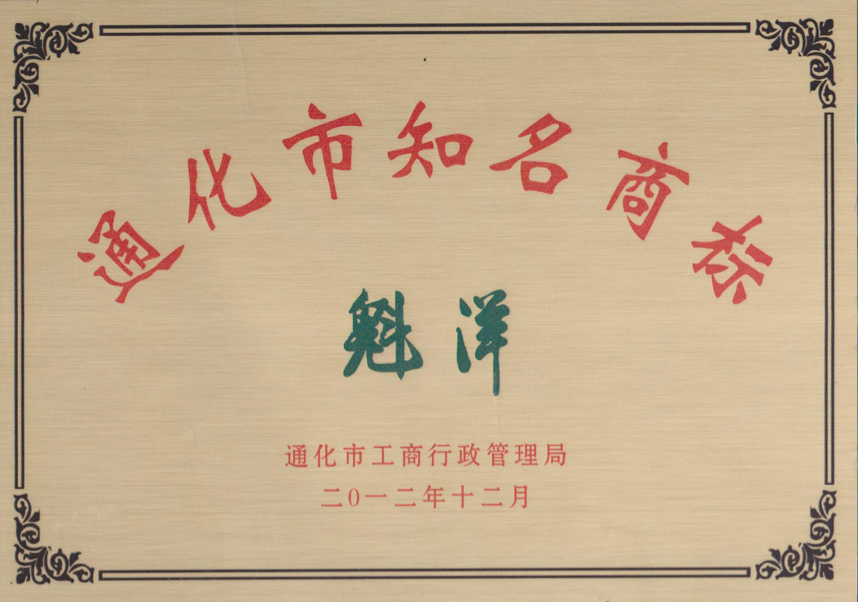 通化市知名商標(biāo)獎(jiǎng)牌